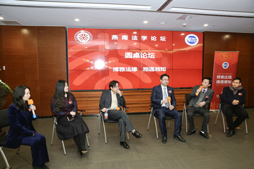 学术报告结束后,在主持人引导下,由湛中乐教授、陈端洪教授,和校友代表李凤祥、邓晔、徐靖作为与谈人举行了圆桌论坛。几位嘉宾共同为大家带来了一场高品格的学术盛宴,论坛在全体校友的热烈掌声中圆满结束。