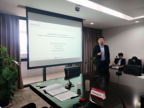 第二位发言的是来自香港中文大学经管学院的刘庄老师。在《司法公开与公司金融——来自中国裁判文书网“数据缺失”的实证研究》的报告中,刘庄老师着眼于司法透明度的问题,从2014年最高人民法院公布的《关于人民法院在互联网公布裁判文书》的强制性规定入手,通过对比研究上市公司诉讼案件的信息公开与裁判文书网对该类案件的公开情况,指出了裁判文书网存在选择性上网问题,并对影响其选择偏误的因素,如政治因素、国有企业身份和地方企业保护等因素进行了深入讨论。