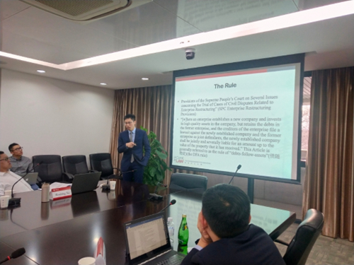 香港中文大学法律学院的曾思老师讨论的是法人人格与中国“债随物走”的规则。在报告中,曾思老师介绍了其对中国法院在司法实践中使用“债随物走”规则进行了经验研究,并分析了该规则的社会成本收益。