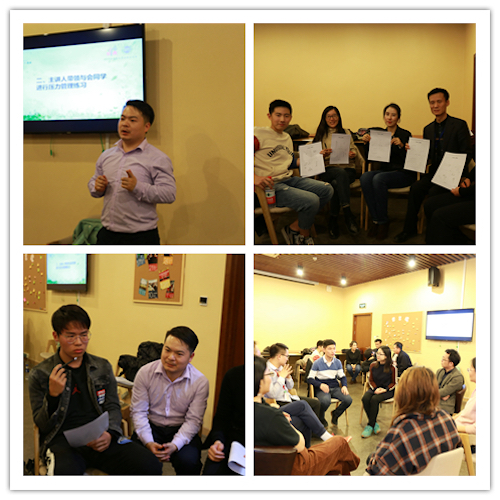 首先,张英俊老师简要介绍了团体心理学的理论知识。随后,他通过“龙的传人”合作游戏带领同学们进入压力管理练习,令同学们在轻松愉快的氛围中对压力管理有了系统认识。在自由交流环节,张英俊老师把同学们分成三个小组,各组成员完成相应的心理测试题并相互倾诉自身的压力,在沟通中学会信任、接纳和共融。最后,在张英俊老师的引导下,同学们通过绘画的方式展现自己现在面临的压力、解决压力的办法以及解决之后的状态,同学们在分享绘画的过程中收获了很多应对压力的办法。
