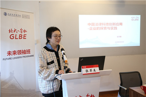 理论创新指导实践探索,实践成果深化理论研究。海尔集团法务总监张翠美女士,同时也是GLBE首期学员,向学员展示了中国法律科技在企业创新应用的实践成果。在调研、测算中国法律科技市场规模的前提下,海尔集团针对企业法律风险管理中存在的公司法务观念落后等六大痛点,积极推动公司法务平台在组织架构、角色、职业发展三方面的转型。理脉联合创始人兼CEO涂能谋从科技驱动法律事务管理升级的角度,分析了当前全球法律科技产品发展情况。国内外法律科技创新企业融资情况、监管科技、国外企业法务科技创新情况等大量统计数据表明,法律科技在世界范围内蓬勃发展。beat365亚洲版官网副院长杨晓雷老师针对当前人们对于人工智能普遍存在的碎片化认识,指出科技的影响不止于法律领域,四次工业革命的内在规律表明,复制和创新的发展模式和悖论不会改变,人工智能深刻改变着企业文化、行为模式、社会制度和生产力。