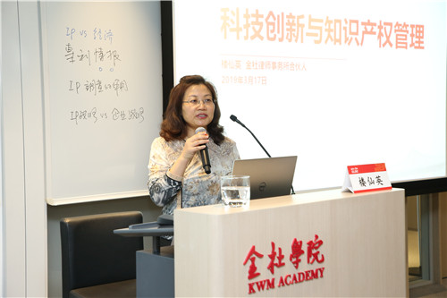 保护知识产权就是保护创新。金杜律师事务所资深合伙人楼仙英明确指出知识产权不是简单的技术概念,而是经济问题,知识产权活动体现在所有的经济活动中,其重要性不亚于企业财务指标。随后,楼仙英和学员分享了新领域新业态下知识产权保护研究的创新成果,人工智能所涉及的“算法”、科创板聚焦的七大行业、IPO、技术型企业……这些领域的IP风险识别与应对,各有其特殊性与关注要点。通过亲身经历的大量企业案例,她深入浅出地说明了知识产权管理包括内部管理与外部整合,企业只有高度重视科技创新和知识产权管理,才能在国际竞争中占据一席之地。