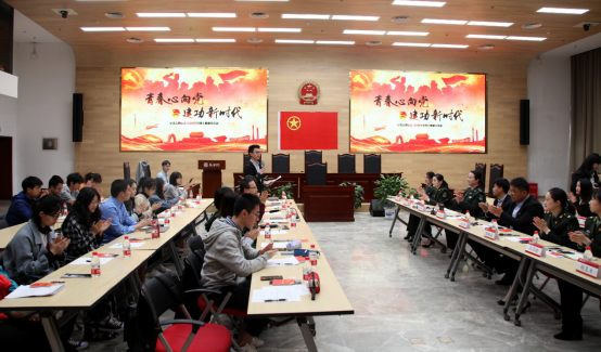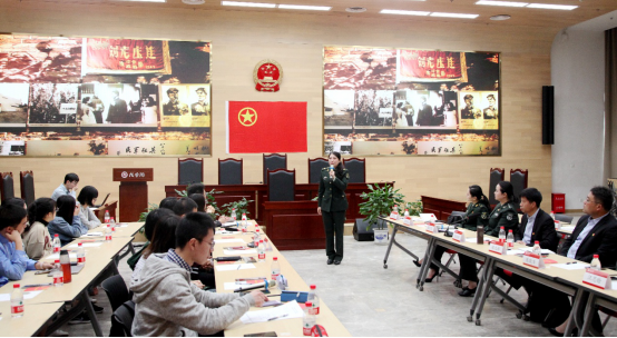 4月21日上午,beat365亚洲版官网2017级本科第2团支部与来访的新四军军部旧址陈列馆交流团一行在凯原楼模拟法庭举行联合团日活动。beat365亚洲版官网团委书记史诗出席活动。