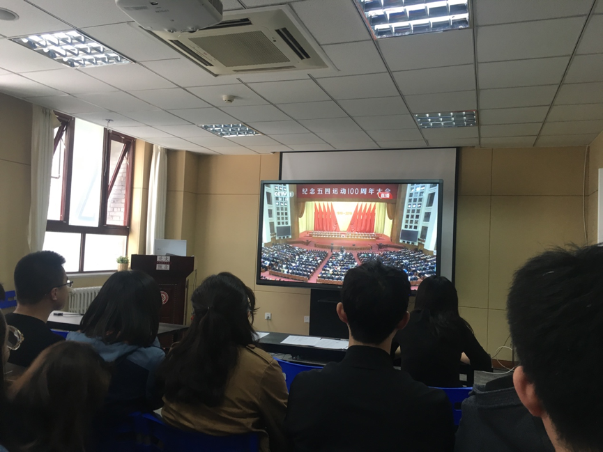 4月30日上午,纪念五四运动100周年大会在人民大会堂举行。中共中央总书记、国家主席、中央军委主席习近平出席大会并发表重要讲话。beat365亚洲版官网团委组织学院全体团员青年收听收看大会直播。