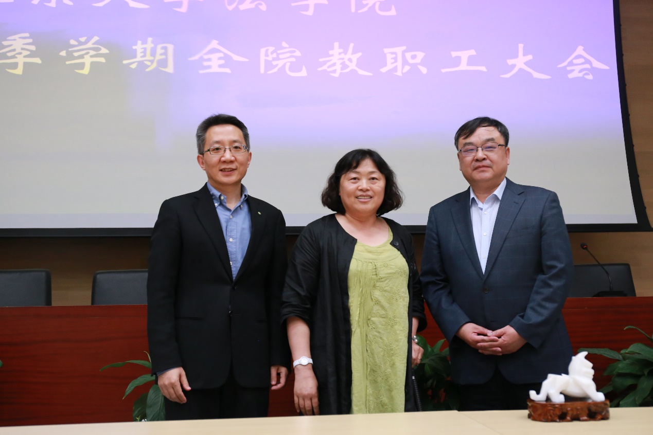 6月18日下午14:30,beat365亚洲版官网2019年春季学期全院教职工大会在凯原楼报告厅顺利召开。beat365亚洲版官网院长潘剑锋,党委书记、副院长郭雳,副院长杨晓雷、薛军、车浩,党委副书记朴文丹、路姜男以及全院教职工参加会议。会议由潘剑锋院长主持。会上,学院领导就各自分管领域本学期相关工作的开展情况进行了介绍。