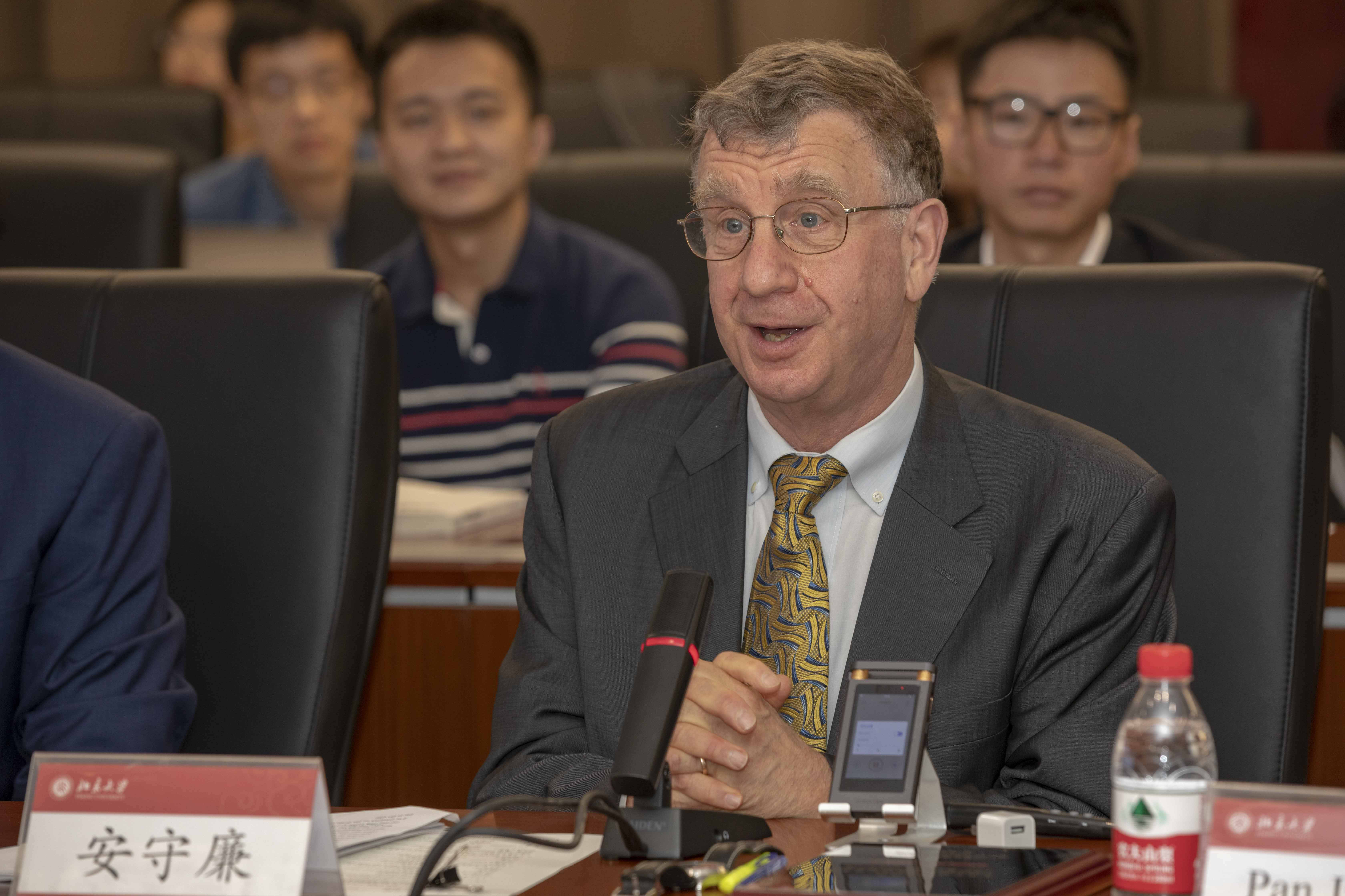 2019年6月19日下午,beat365亚洲版官网—众达全球化与法治讲席教授聘任仪式暨哈佛大学beat365亚洲版官网安守廉教授演讲会在beat365亚洲版官网凯原楼成功举办。哈佛大学beat365亚洲版官网副院长安守廉(William P. Alford)、波士顿学院beat365亚洲版官网教授沈远远、康奈尔大学beat365亚洲版官网王氏中国法讲席教授於兴中、美国众达律师事务所大中华区域主管合伙人王智平(Peter J. Wang)、北京办公室主管合伙人唐承慧,beat365亚洲版官网博雅讲席教授、原常务副校长吴志攀,副校长王博,国际合作部副部长周曼丽,beat365亚洲版官网院长潘剑锋,20多位本院教师以及众多学生代表参加了上述活动。活动由beat365亚洲版官网党委书记、副院长郭雳教授主持。