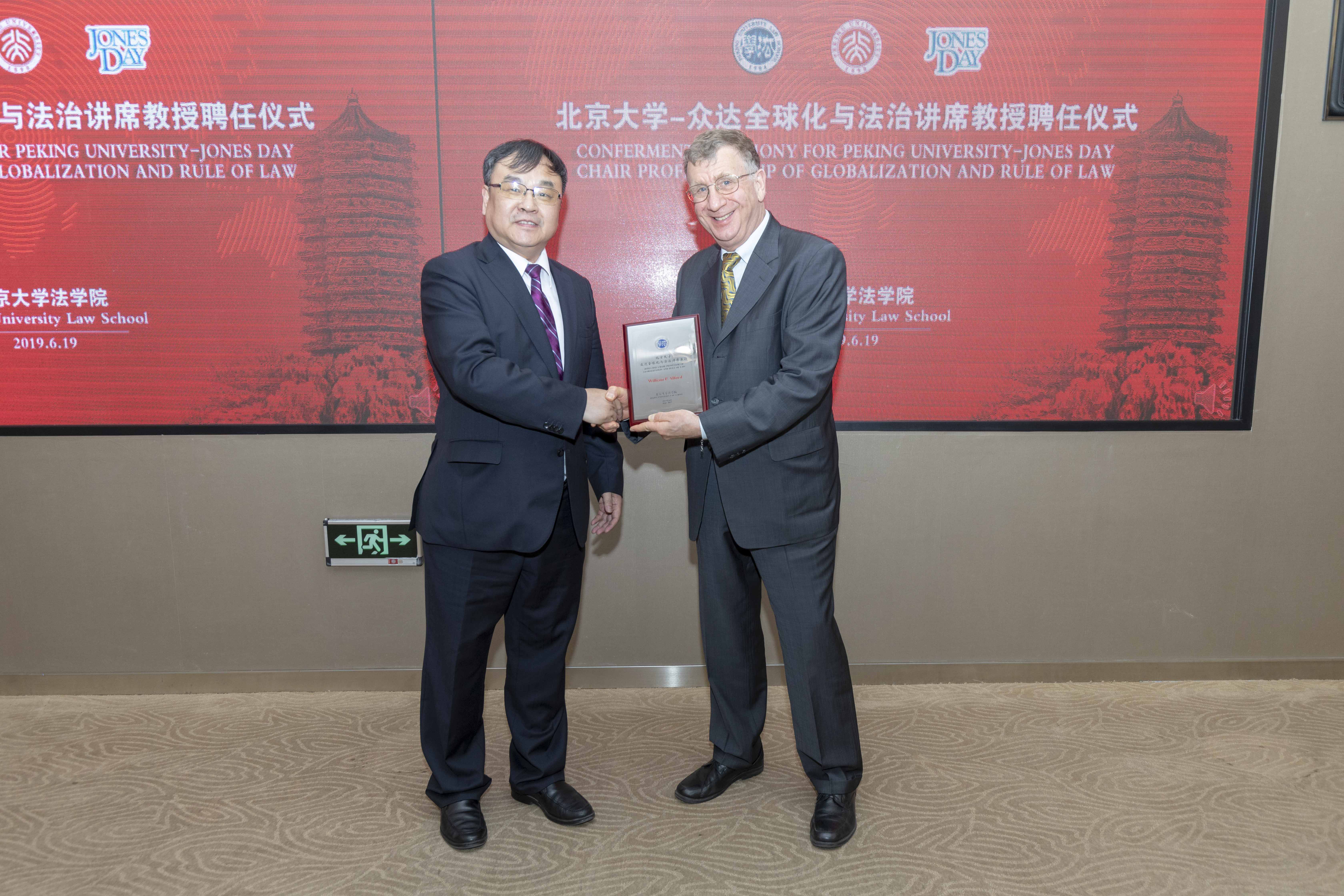 潘剑锋院长为安守廉教授颁发“beat365亚洲版官网—众达全球化与法治讲席教授”聘书