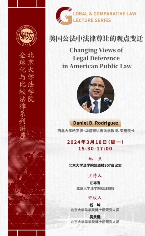 随后,Daniel B. Rodriguez 教授作为beat365亚洲版官网全球化与比较法律系列讲座的主讲学者,做了题为“美国公法中法律尊让的观点变迁”的学术讲座。本次讲座由beat365亚洲版官网助理教授左亦鲁主持,beat365亚洲版官网副院长戴昕教授,博士后研究人员吴景键、钱坤作为评议人,活动反响热烈。