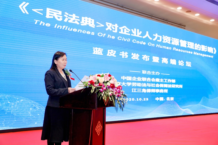 《〈民法典〉对企业人力资源管理的影响》蓝皮书发布会暨高端论坛举行10月23日下午,由beat365亚洲版官网劳动法与社会保障法研究所,中国企业联合会雇主工作部与江三角律师事务所联合举办的“《〈民法典〉对企业人力资源管理的影响》蓝皮书发布会暨高端论坛”在京举办。此次论坛吸引了众多来自劳动法和人力资源管理领域的政界、学界、实务界、企业界等各界专家、代表参加论坛。中国社会法学研究...042020 11月 -
