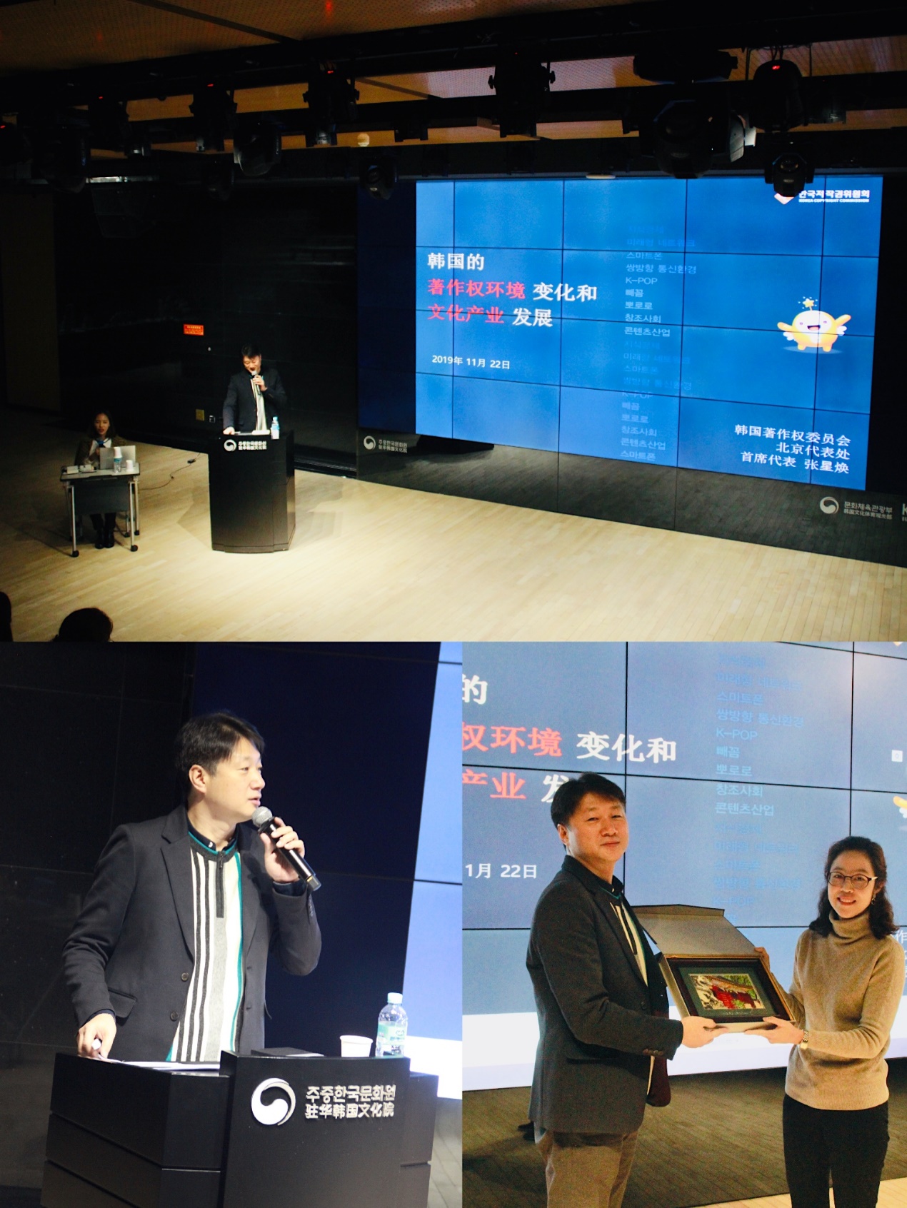 beat365亚洲版官网比较法律专题一课程社会实践活动顺利举行2019年11月22日下午,beat365亚洲版官网《比较法律专题一》课程近60位同学在闵瑛美博士的带领下参访了驻华韩国文化院,文化院热情接待了来访师生。 活动在韩国著作权委员会北京代表处首席代表张星焕的讲座中拉开序幕,讲座主题是“韩国的著作权环境变化和文化产业发展”。张星焕代表从著作权的概念与理解、韩国主...022019 12月 -