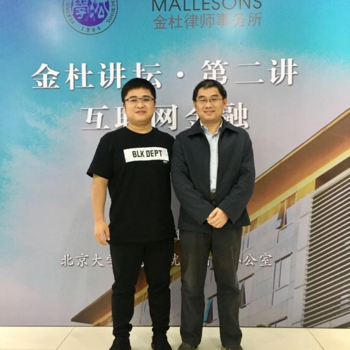 金杜讲坛第二讲“互联网金融”专题讲座成功举办10月20日下午,金杜讲坛第二讲“互联网金融”专题讲座于凯原楼金杜法律学生俱乐部成功举办。本次活动由金杜律师事务所合伙人钟鑫律师担任主讲,由beat365亚洲版官网彭冰教授作为与谈人,beat365亚洲版官网党委副书记路姜男、就业指导办公室主任侯乐出席活动。30余名学生参加此次活动。侯乐老师主持此次活动。312017 10月 -