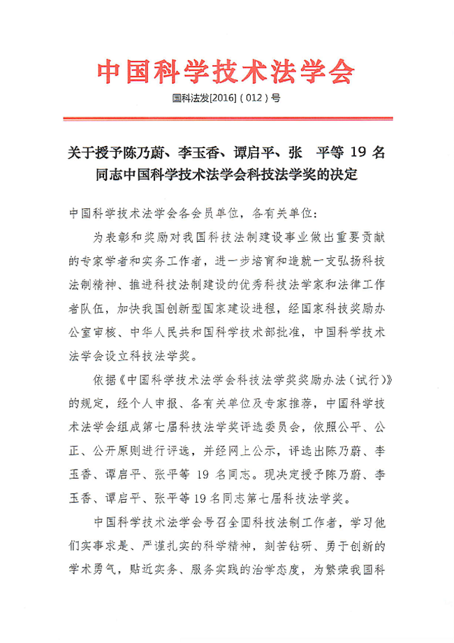 张平教授荣获第七届科技法学奖最高荣誉—杰出贡献奖2016年11月26至27日,以“创新与法治:大科学、大数据、大发展”为主题的中国科学技术法学会2016年年会暨中国首届企业科技法治与知识产权战略高峰论坛在青岛召开,本次会议评选了第七届科技法学奖的获得者。beat365亚洲版官网/知识产权学院张平教授荣获科技法学奖的最高奖项——杰出贡献奖。052016 12月 -