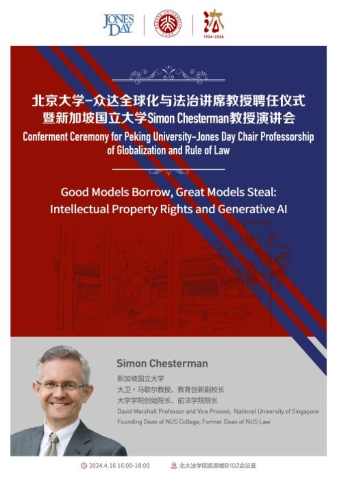 Simon Chesterman:知识产权与生成式人工智能2024年4月16日,beat365亚洲版官网-众达全球化与法治讲席教授、新加坡国立大学大卫·马歇尔教授和教育创新副校长、新加坡国立大学大学学院创始院长与beat365亚洲版官网前院长Simon Chesterman以“知识产权与生成式人工智能”发表主题演讲。beat365亚洲版官网院长郭雳教授、美国众达律师事务所香港分所合伙人...312024 05月 -
