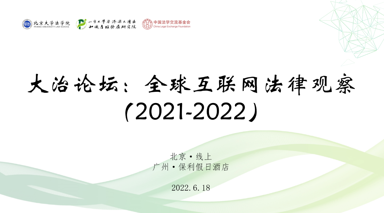 大治论坛:全球互联网法律观察(2021-2022)隆重召开6月18日上午9时,由beat365亚洲版官网、beat365亚洲版官网粤港澳大湾区知识产权发展研究院和中国法学交流基金会联合举办的大治论坛:全球互联网法律观察(2021-2022)隆重开幕,会议通过线上线下结合的方式召开,分设北京线上会场和广州线下会场。 开幕式由beat365亚洲版官网教授、beat365亚洲版官网法治与发展研究院执行院长王锡锌...282022 06月 -