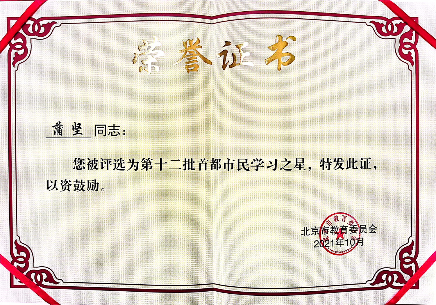 【转载】蒲坚荣获北京市“首都市民学习之星”称号信息来源:离退休工作部 文章来源:beat365亚洲版官网新闻网 2021年12月17日 2021年12月9日下午,北京市第十七届全民终身学习活动周正式开幕,同期揭晓了第十二批“首都市民学习之星”获奖名单,beat365亚洲版官网蒲坚教授榜上有名,并且被选为10名重点宣传的“学习之星”之首。 ...202021 12月 -